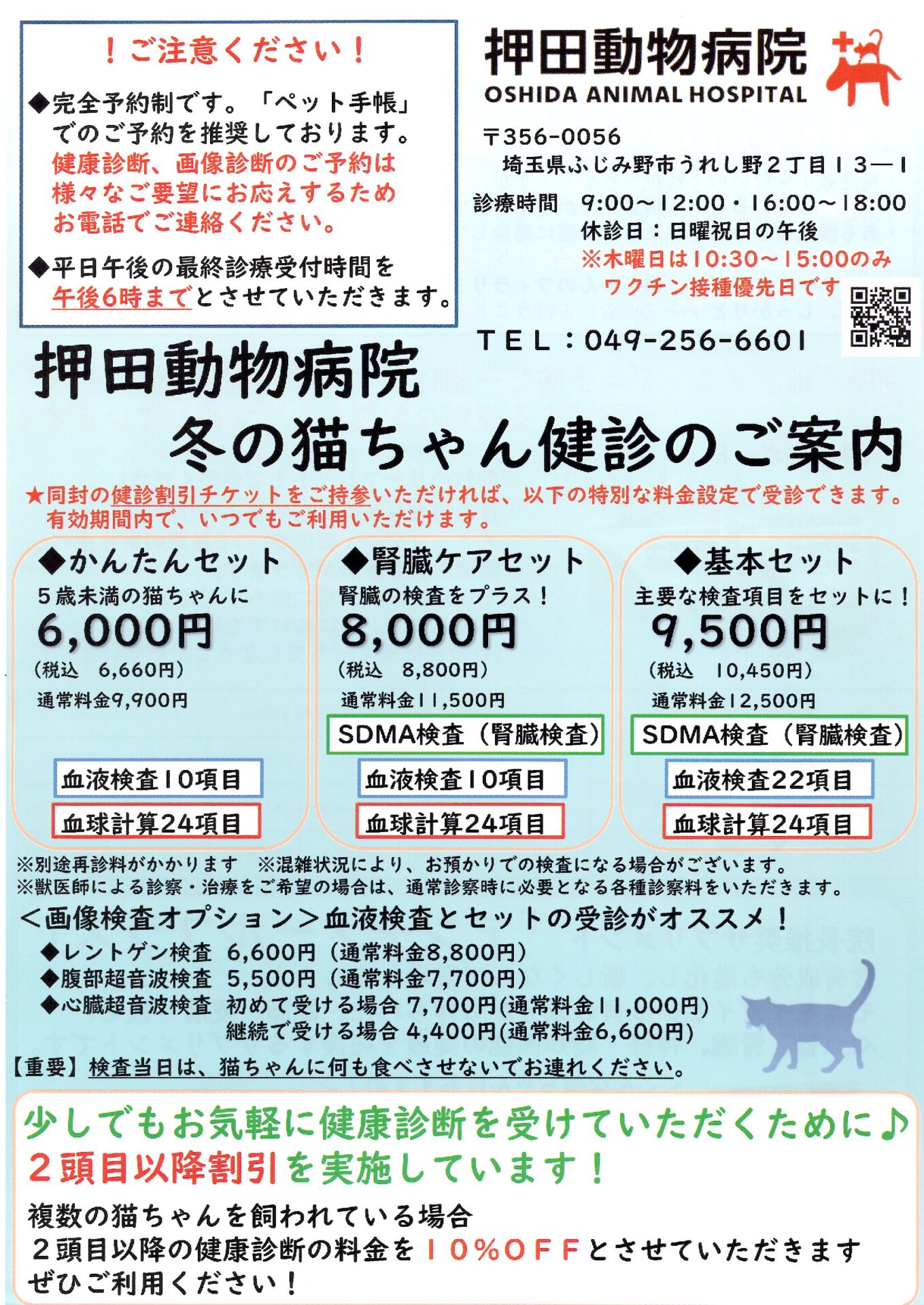冬の猫ちゃんの健康診断(2月末まで)が始まりました。